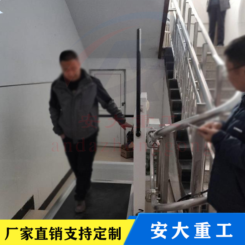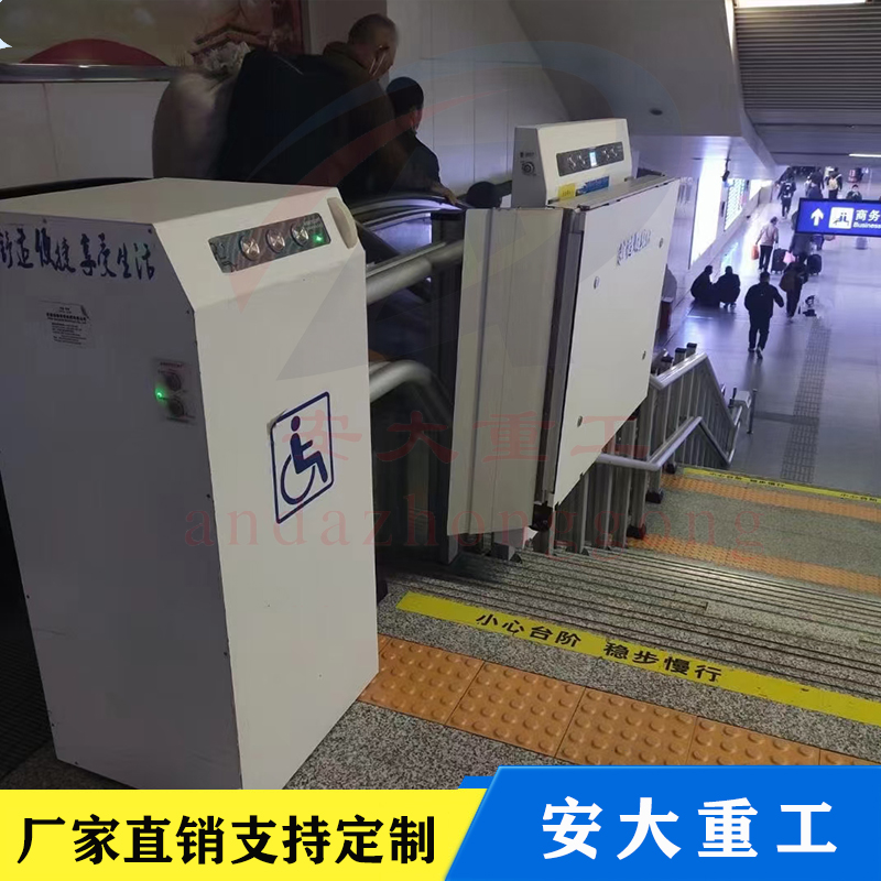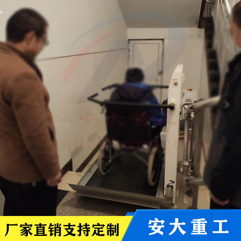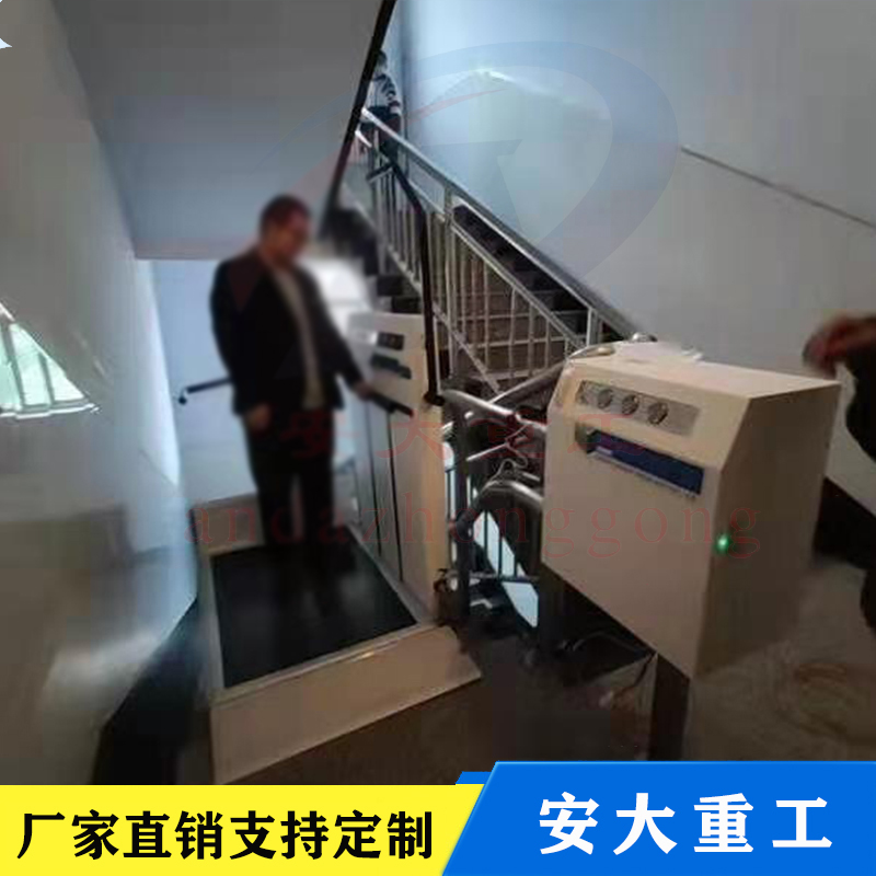 斜挎式無障礙升降平臺按其運行方向分曲線型和直線型兩種。直線型多采用齒輪齒條式驅動機構,沿樓梯做上升和下降,只能作直線運行不能轉彎,傾斜角一般不大于35度,適用于樓層較低